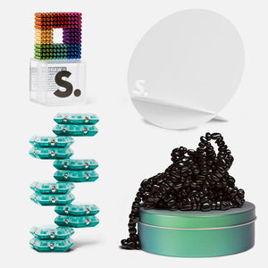 Speks are like putty and building blocks all in one. The Spectrum set contains 512 magnet balls and comes in a rainbow of 8 different colors.