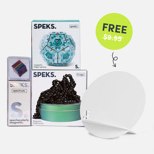 Show off Speks in style with our exclusive powder coated metal stand. Designed to perfectly pair with Speks, Fleks, and Geode, this compact stand is the perfect fit for any desk, shelf or space where a little fun is needed.