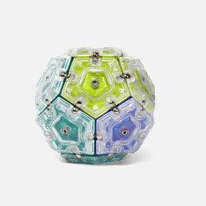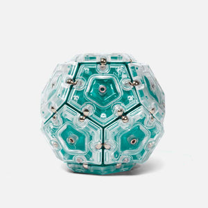 On-the-desk or on-the-go, Geode is the perfect fidget desk toy. Each set includes 12 pentagons or triangles that align and snap into the perfect sphere. Combine colors and shapes for bigger builds and more fun!