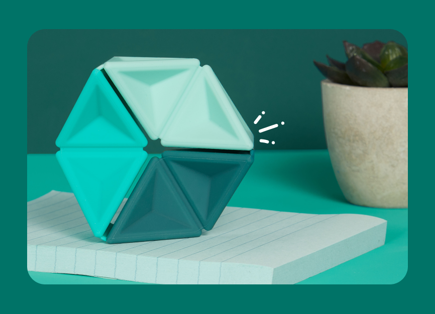 Pivot is a very discrete sensory tool that rotates in on itself without making a sound. Available in 4 colors, Pivot adds a touch of style and color to any desk, and is easy to throw in a bag for on-the-go fidgeting!